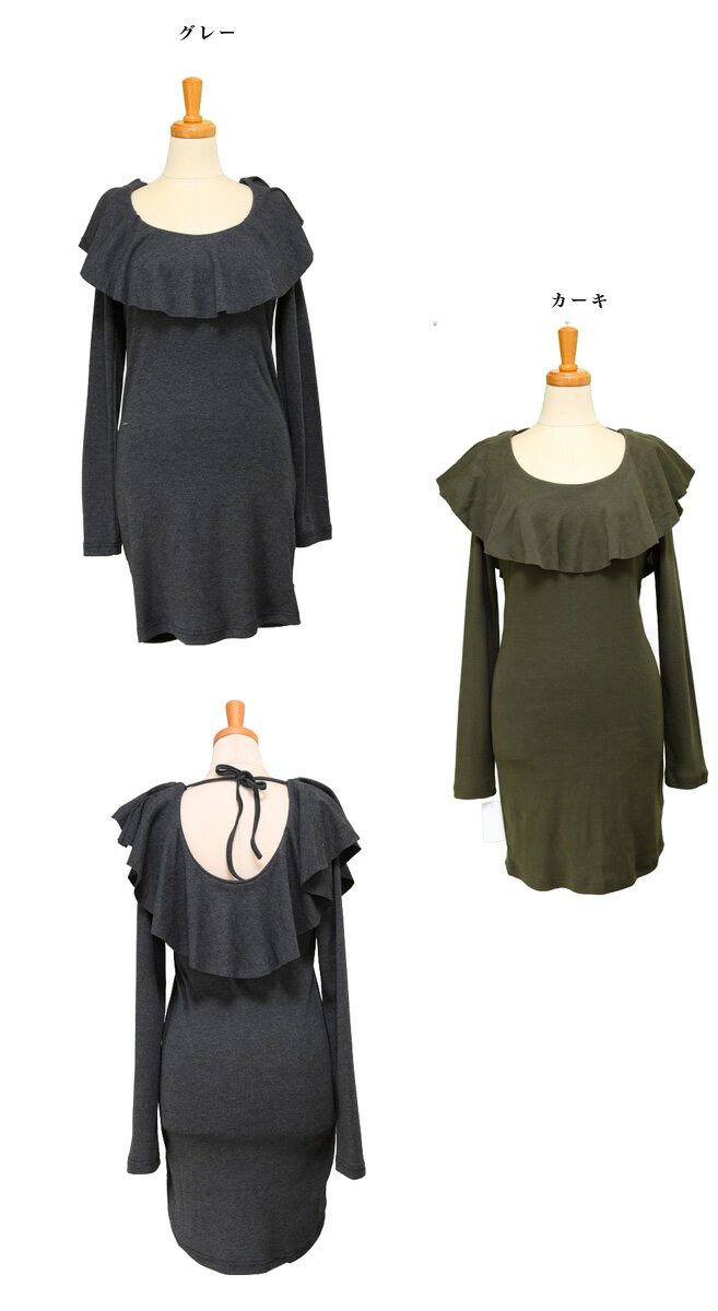 ミリター& サファリ 胸元フリルデザイン チュニックワンピ! ●ソリッドカ ラーで大人なでエレガントな着こなし! ●胸元フリルでふわ揺れ感が女の子さを演出! ●程よい丈でレギンスやスキニーやトレンカと相性が良いです。