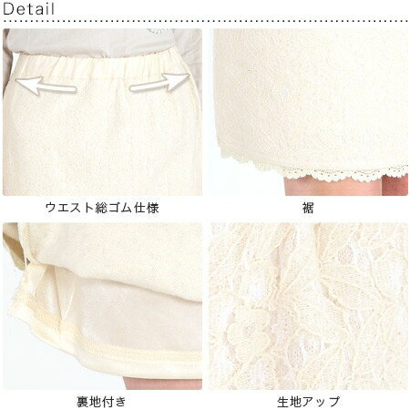 いい女シルエットを演出 上品なレーススカートフラワーレースのデザインに心奪われる上品なペンシルスカート ストンと落ちるスッキリとしたラインで縦長効果が強調され、すっきり細見え 裏地付なので、安心してはけるのが嬉しいポイント ウエストは総ゴムなので、はき心地も楽ちんです 大きいサイズ()内は対応ヌードサイズ表記は全てcm[M] ウエスト(64-70) 総丈55[L] ウエスト(69-77) 総丈55[LL] ウエスト(77-85) 総丈57●裏地付※素材の特性上、長時間の摩擦や揉み作用で毛玉が出来やすいので、ご注意下さい。