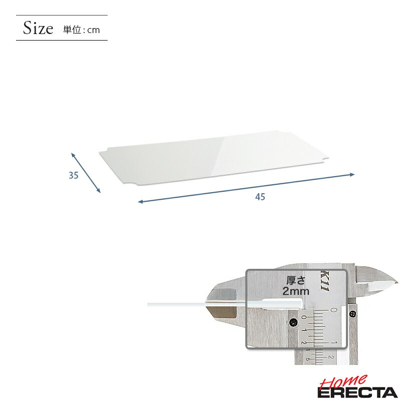耐荷重 135kg(ワイヤーシェルフの上に乗せた場合) 内容明細 アクリル板×1枚 材質 2mm厚アクリル(クリア) 型番 H1418AB1 JANコード 853268 メーカー エレクター株式会社