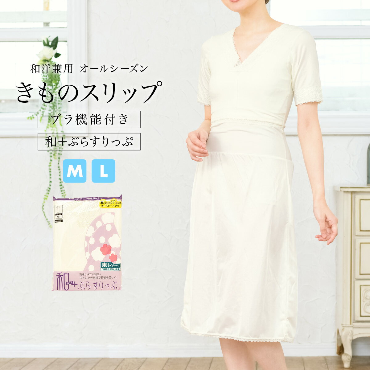 着物スリップ きものスリップ ブラスリップ オールシーズン クリーム 東レ スチレッチ素材 汗取りパッド付 ワンピース型 和装下着 肌着 肌襦袢 裾除け 着付け小物【Mサイズ】【Lサイズ】【メール便対応】【あす楽対応】【送料無料】