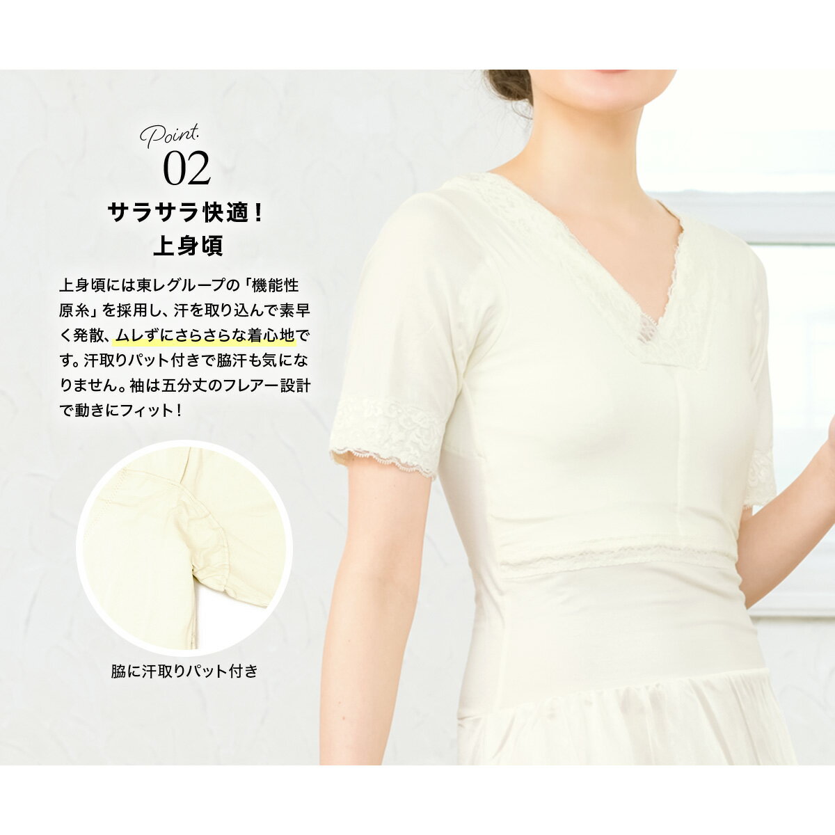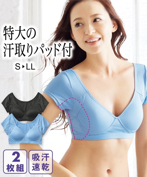 接触冷感・吸汗速乾 脇汗取りパッド付ブラ内蔵メッシュハーフトップ2枚組 肌着・インナー 30代 40代 50代 女性 大きいサイズ レディース セット組